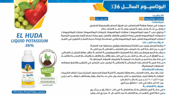 سماد البوتاسيوم السائل 36% – كبريت 1.8% عبوة 1 لتر