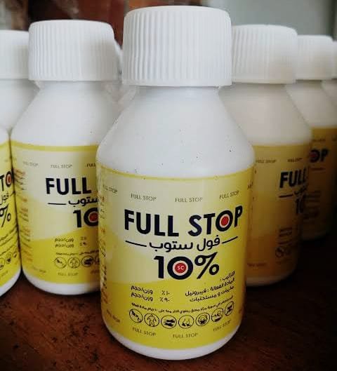 مبيد فول ستوب (full stop10% ) 100 جم يستخدم رش المبيد بمعدل 29 سم لكل 10 لتر ماء، مرخص من وزارة الصحة ويقضي أيضا على حشرة المن والتربس وحشرة البق الدقيقي والحشرات الزاحفة .