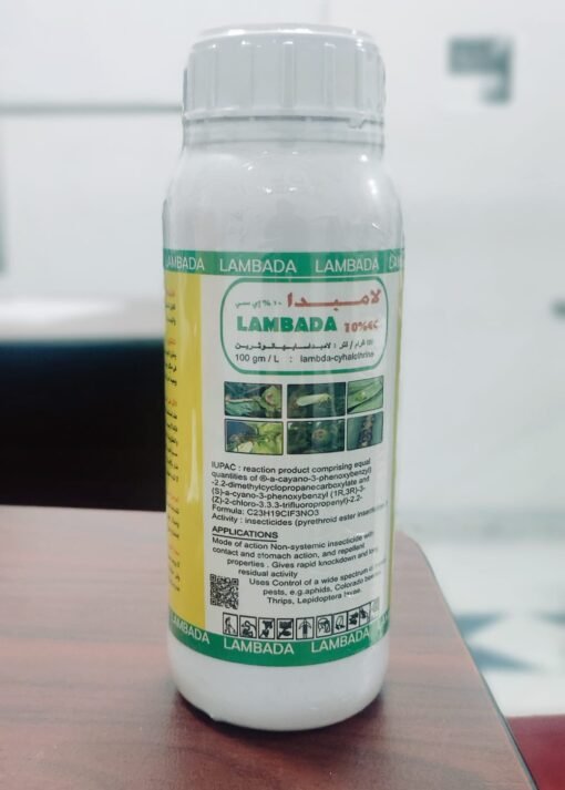 خواص إستعمال مبيد لمبادا :- مبيد حشري من مجموعة البيرثرويد 3A Pyrethroids – يحتوي على مادة فعاله لمبادا سيهالوثرين lambda-cyhalothrin بتركيز 10% ، قليل السمية للإنسان والحيوان ويقاوم غالبية الحشرات والآفات.