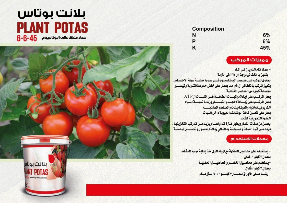 تحسين مواصفات الثمار من تكوين وقابلية التخزين وزيادة حجم الثمار زيادة مقاومة النبات للجفاف والأمراض الفطرية ويحسن نمو النباتات يصلح للاستخدام في جميع انظمة الري