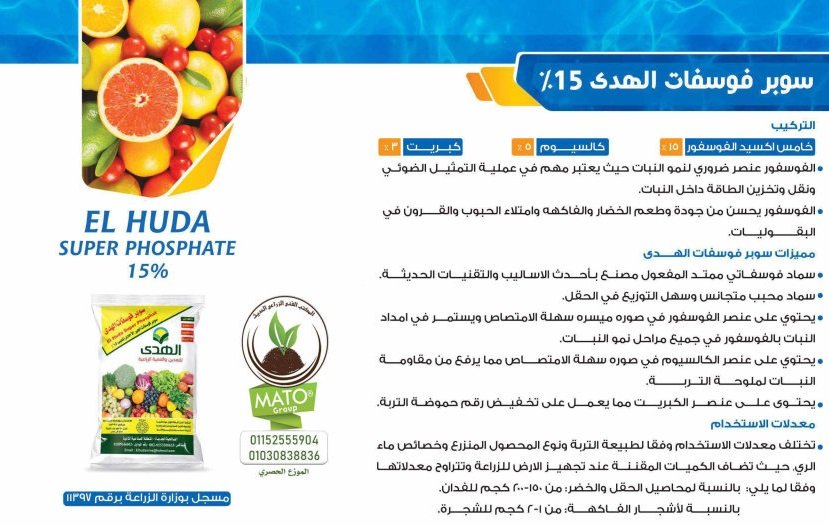 يحتوى على عنصر الفوسفور فى صورة ميسرة سهلة الامتصاص ويستمر في إمداد النبات بالفوسفور في جميع مراحل نمو النبات.
