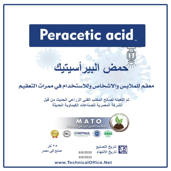 مصرح به من وزارة الصحه وهيئة الصحه العالميه ولدينا ملف معتمد من هيئة الصحة العالميه يحتوي على كامل تفاصيل المركب ومدى فعاليته في التعقيم والتطهير